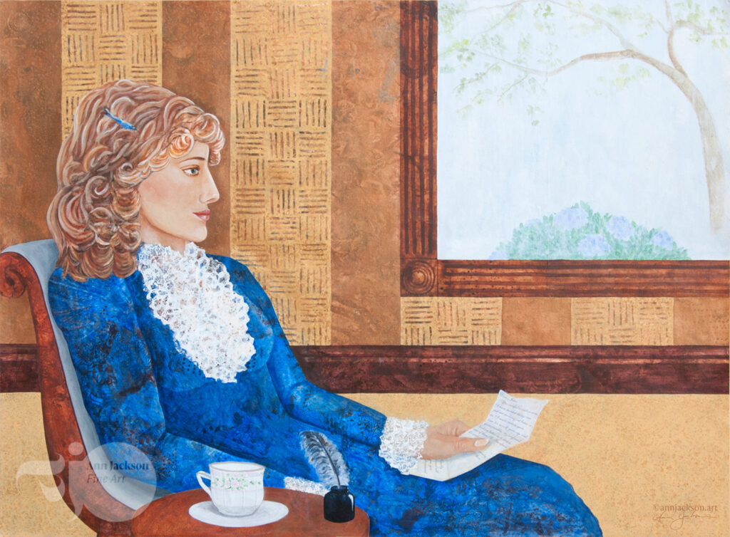 My friend Laura jokingly suggested the above words for the letter after I mentioned wanting it to be a “Dear John” letter but wasn’t sure what to write. She found it hilarious that I actually used her suggestion in the painting.
